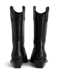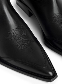45mm Cara Western boots Highlights - Black - Calf leather - 45mm cuban heel - Western-style stitched yoke - Double pull-tab at the opening - Pointed toe - Leather sole Imported Composition Lining: Calf Leather 100% Outer: Calf Leather 100% Sole: Calf Leather 100% SIZE & FIT Measurement HEEL 1.77 in(4.5 cm)