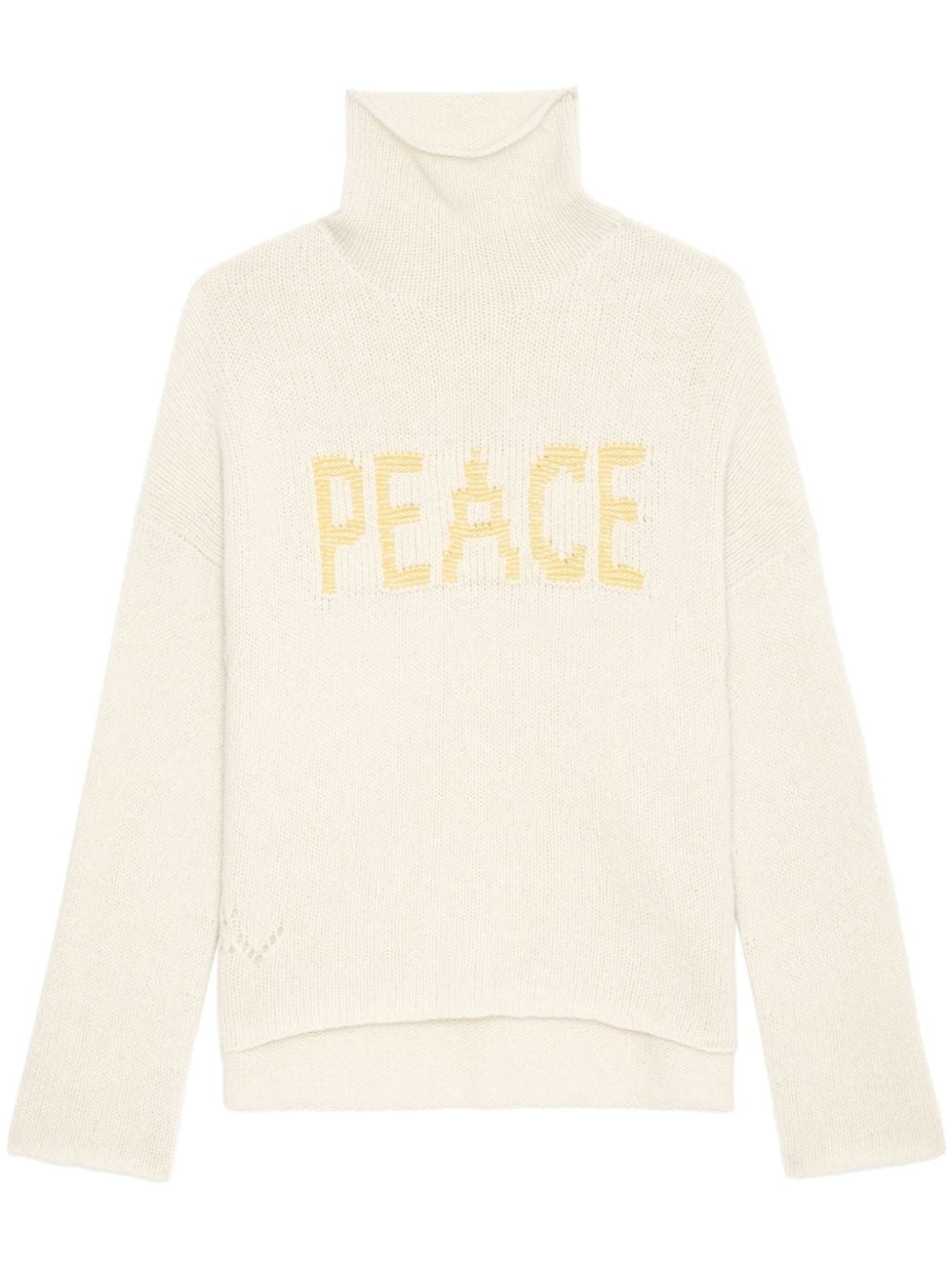 Alma Peace jumper Highlights - White - Merino wool - Jacquard logo motif - High neck - Long sleeves - Side slits - Rolled trim Imported Composition Merino 100%