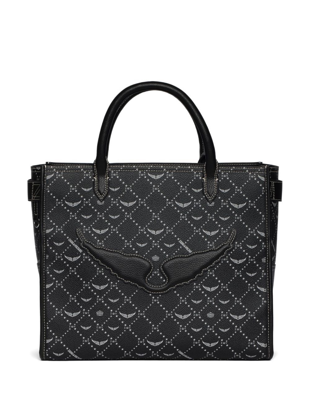 Angel logo tote bag Highlights - Black - Monogram pattern - Dual top handles - Detachable charm - Spacious interior Imported Composition Polyurethane 67%, Recycled Polyester 33% SIZE & FIT Measurement DEPTH 6.69 in(17 cm) HEIGHT 11.02 in(28 cm) WIDTH 12.99 in(33 cm)