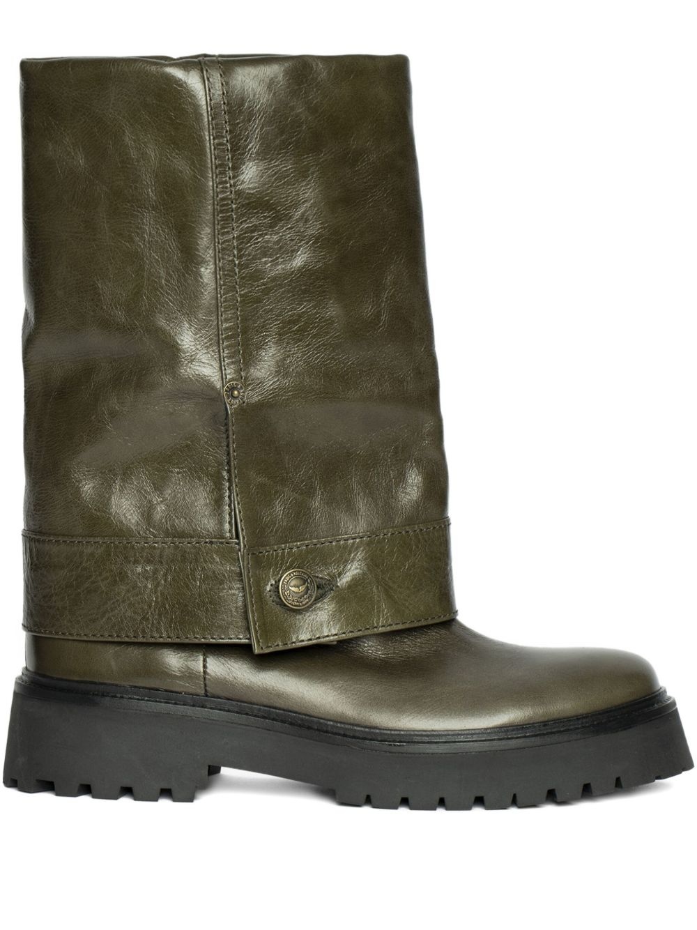 Angie fold-over leather boots Highlights - Olive green - Fold-over top - Chunky sole - Round toe Imported Composition Sole: Rubber 100% Lining: Leather 100% Outer: Leather 100%