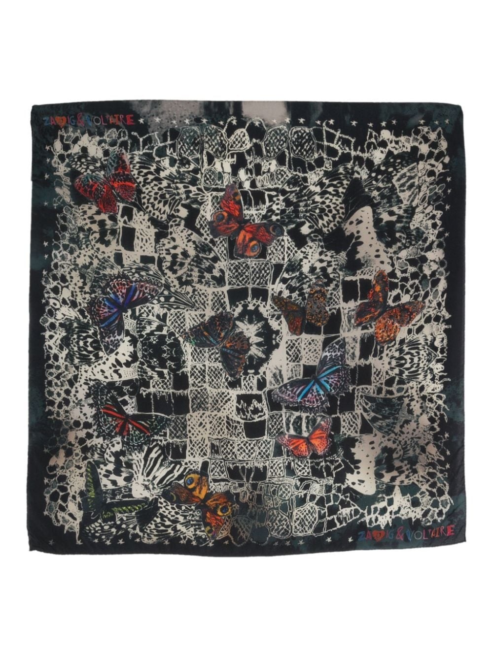 Blondie 70 organic-silk scarf Highlights - Indigo blue/multicolour - Organic silk - Voile - Butterfly print - Logo print to the front - Square shape - Solid border Made in Italy Composition Organic Silk 100% SIZE & FIT Measurement LENGTH 25.98 in(66 cm) WIDTH 25.98 in(66 cm)