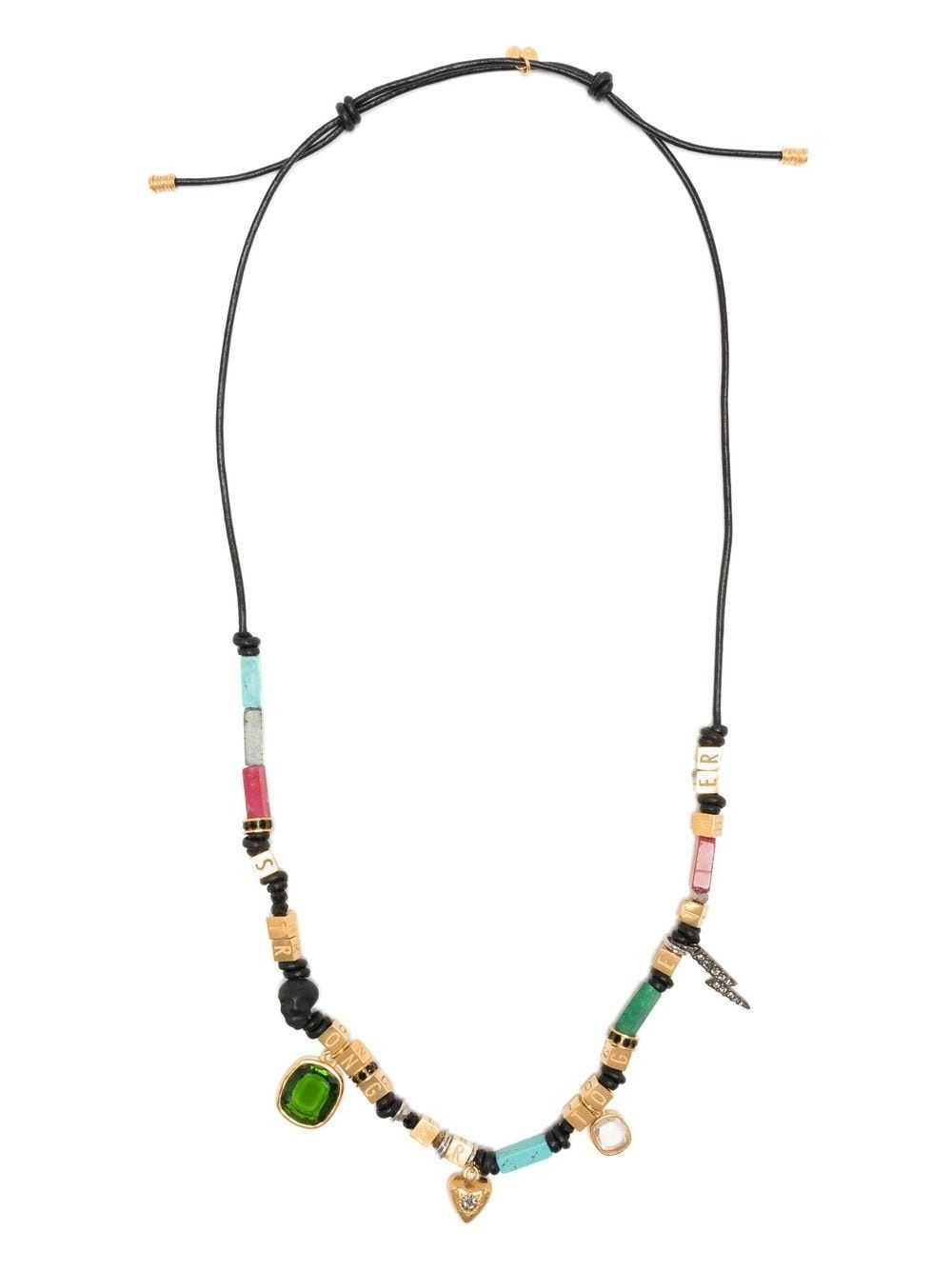 brass charm necklace brass gold charm detail letter charm bead detailing sliding knot fastening Imported