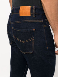 Brut slim-cut jeans midnight blue cotton blend dark wash contrast stitching mid-rise front button and zip fastening classic five pockets Imported Composition Cotton 98%, Spandex/Elastane 2% SIZE & FIT Model measurements Height 6 ft 1 in(1.85 m) Bust/Chest 37.79 in(96 cm) Hips 37.4 in(95 cm) Waist 30.7 in(78 cm) FittingInformation This piece fits true to size. We recommend you get your regular size Cut for a slim fit Made with a mid-weight stretch fabric Washing instructions Machine Wash