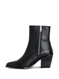 Cara 70mm leather boots Highlights - Black - Calf leather - Silver-tone logo plaque - Side zip fastening - Pointed toe - Mid stacked heel - Ankle-length - Leather sole Imported Composition Sole: Calf Leather 100% Lining: Calf Leather 100% Outer: Calf Leather 100%
