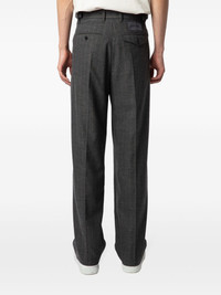 checkered pressed-crease trousers Highlights - Grey - Check pattern - Pressed crease - Logo patch to the rear - Decorative buckle detail - Belt loops - Hook and zip fly fastening - Two side slit pockets - Rear flap pocket - Rear welt pocket Imported Composition Outer: Polyester 64%, Viscose 36% Washing instructions Read Manufacturer Guidelines