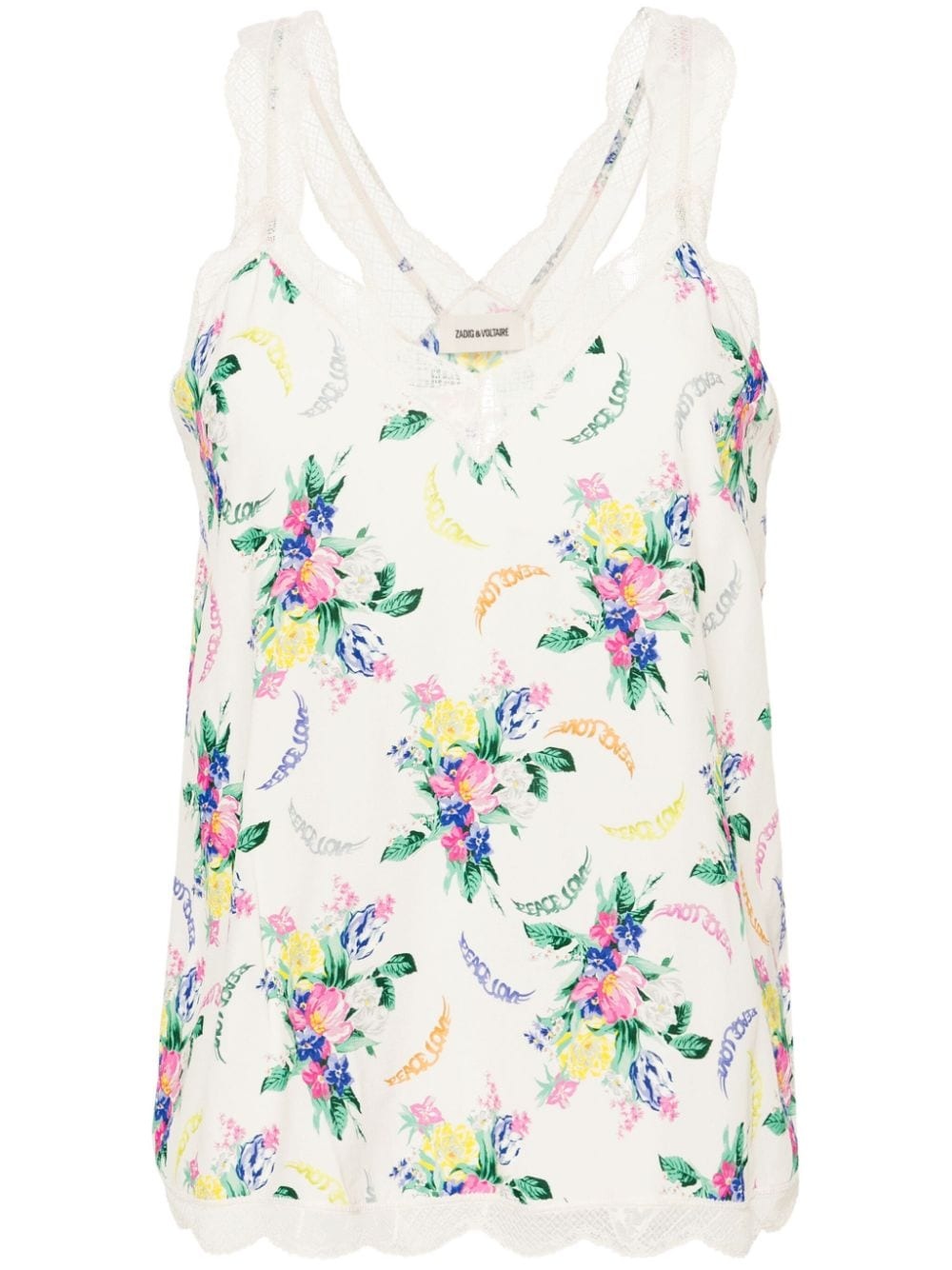 Chou floral-print blouse Highlights - Off-white/multicolour - Crepe de chine - All-over floral print - All-over slogan print - Lace trim - V-neck - Sleeveless - Scallop hem Imported Composition Viscose 100%, Polyamide 77%, Elastane 23% SIZE & FIT Model measurements Height 5 ft 10 in(1.77 m) Bust/Chest 32.28 in(82 cm) Hips 35.03 in(89 cm) Waist 25.19 in(64 cm) FittingInformation Designed for a relaxed fit, this piece allows for comfort and movement when worn Made from a lightweight fabric This piece fits true to size – take your usual size
