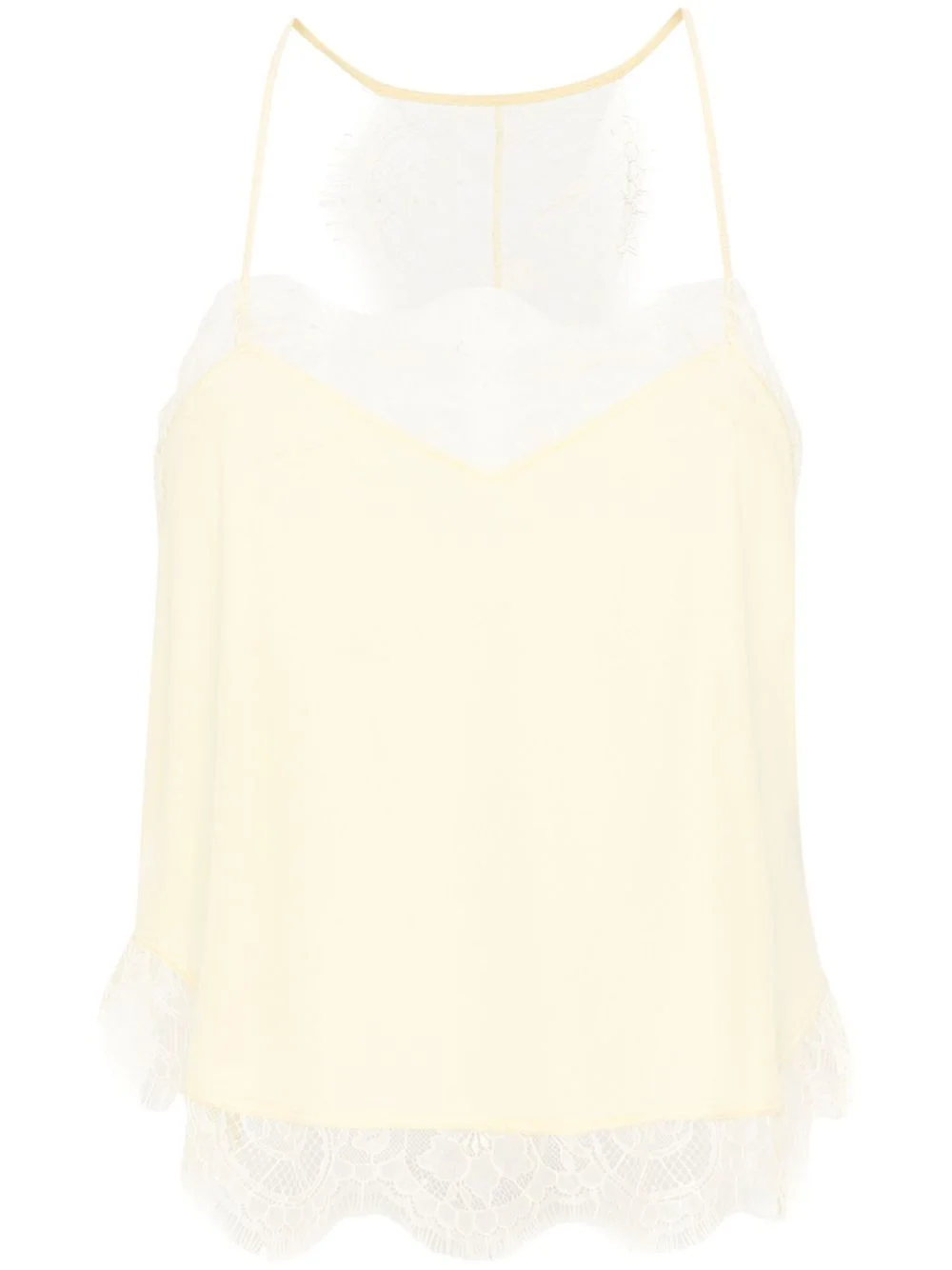 Claudy lace-trim silk top Highlights - Pastel yellow - Silk - Shimmer effect lace trim - Spaghetti straps - V-neck - Curved hem Imported Composition Silk 100%, Polyamide 91%, Polyester 9% Washing instructions Hand Wash