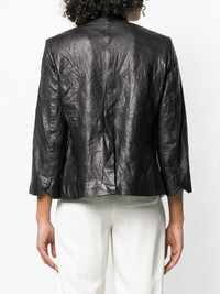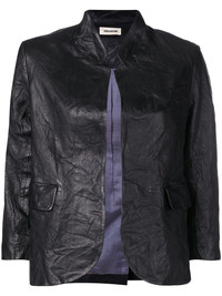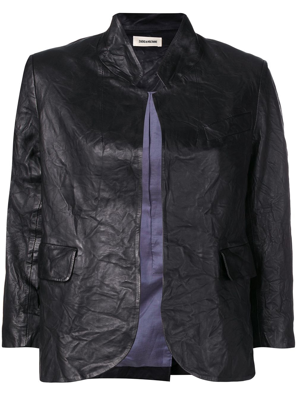 creased effect leather jacket Black lambskin creased effect leather jacket from Zadig & Voltaire featuring a stand up collar, an open front, front flap pockets, three-quarter length sleeves and a rear central vent. Imported Composition Outer: Lamb Skin 100% Lining: Polyester 100%, Cotton 52%, Viscose 48% SIZE & FIT Model measurements Height 5 ft 10 in(1.77 m) Bust/Chest 33.85 in(86 cm) Hips 35.43 in(90 cm) Waist 25.59 in(65 cm) Washing instructions Specialist Cleaning