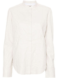crinkled leather overshirt Highlights - Off-white - Lambskin - Crinkled finish - Band collar - Front press-stud fastening - Long sleeves - Press-stud fastening cuffs - Rear curved hem Imported Composition Lamb Skin 100% SIZE & FIT Model measurements Height 5 ft 10 in(1.77 m) Bust/Chest 32.28 in(82 cm) Hips 35.03 in(89 cm) Waist 25.19 in(64 cm) FittingInformation Designed for a relaxed fit, this piece allows for comfort and movement when worn Soft leather has a supple and smooth construction offering some flexibility This piece fits true to size – take your usual size Washing instructions Specialist Cleaning