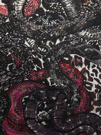 Debbie 85 Snakes scarf Highlights - Burgundy - Square shape - Finished edge - Contrasting trim Made in Italy Composition Viscose 65%, Silk 35% SIZE & FIT Measurement LENGTH 33.46 in(85 cm) WIDTH 33.46 in(85 cm)