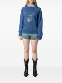 Devil Queen sweatshirt Highlights - Ocean blue - Crew neck - Long raglan sleeves - Ribbed cuffs and hem - Rhinestone embellishment Imported Composition Organic Cotton 100%