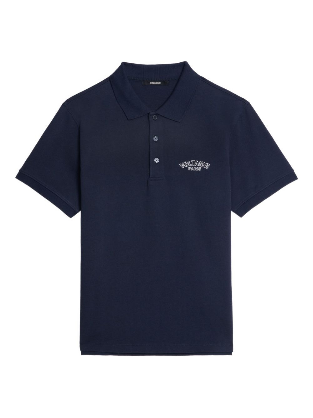 Dimitri logo-embroidered polo shirt Highlights - Navy blue - Organic cotton - Short sleeves - Three-button placket - Embroidered logo Imported Composition Organic Cotton 100%