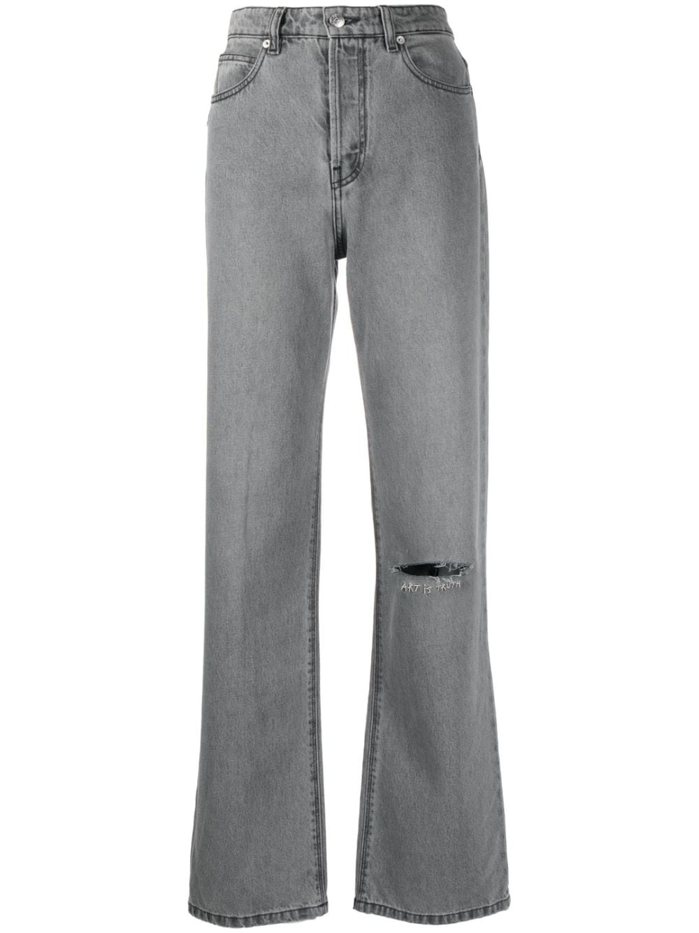 distressed straight-leg jeans Highlights - Grey - Cotton - Belt loops - Front button fastening - Classic five pockets - Distressed effect - Straight leg Imported Composition Cotton 100% SIZE & FIT Model measurements Height 5 ft 11 in(1.8 m) Bust/Chest 31.49 in(80 cm) Hips 35.43 in(90 cm) Waist 24.4 in(62 cm) FittingInformation Designed with a flared hem, these jeans allow for a close fit at the waist with a slim fit over the leg and widening towards the hem Sturdy and hard-wearing, this denim piece offers no stretch This piece fits true to size – take your usual size Washing instructions Machine Wash