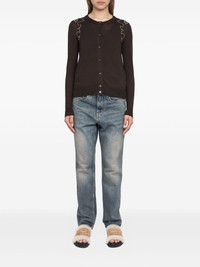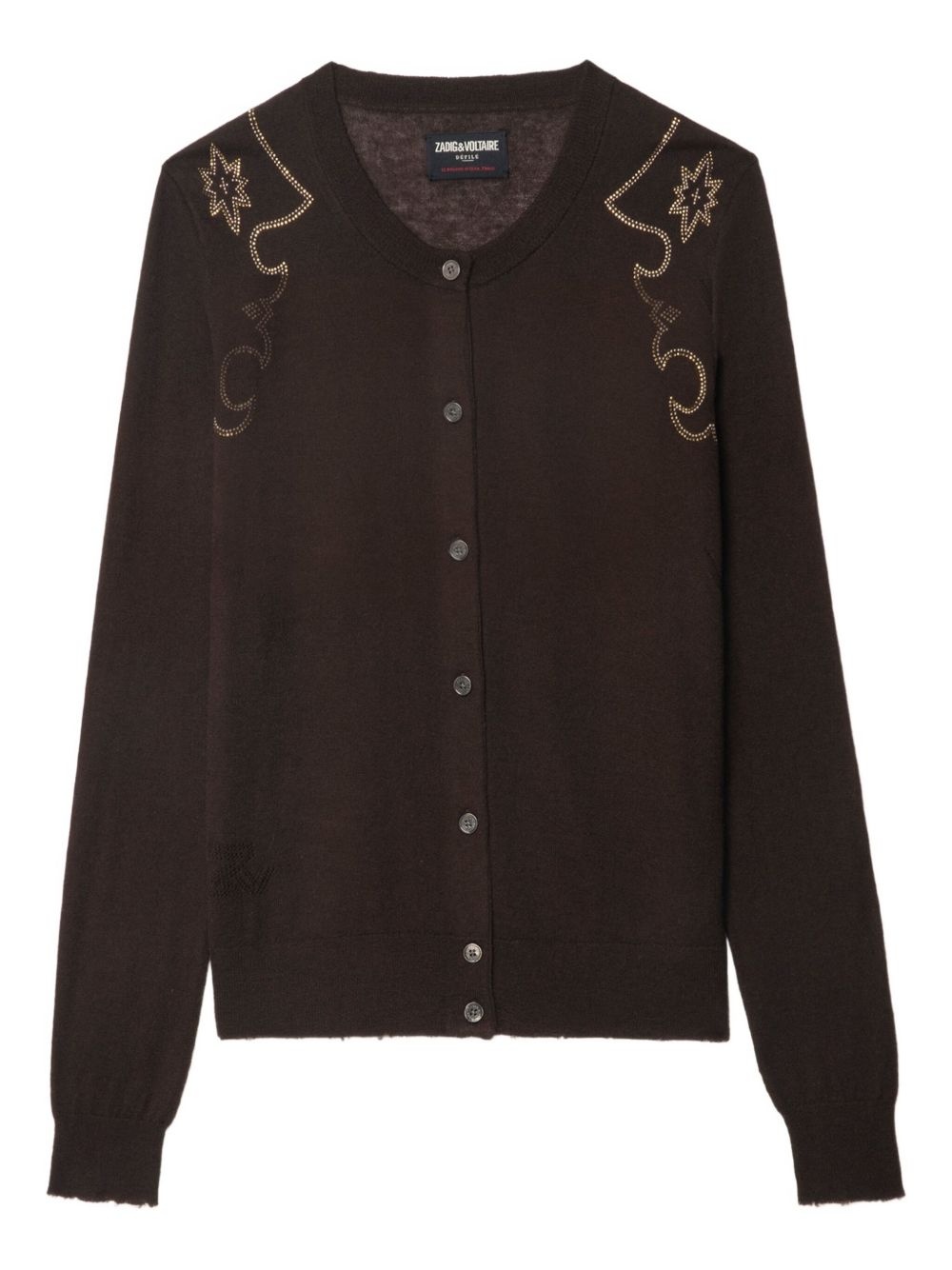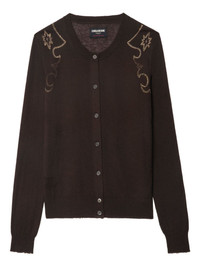 embellished cashmere cardigan Highlights - Chocolate brown - Cashmere - Button front fastening - Shoulder embellishment - Raw hem - Long sleeves Imported Composition Cashmere 100% Washing instructions Read Manufacturer Guidelines