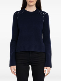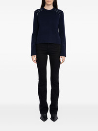 embellished-shoulder crew-neck sweater Highlights - Navy blue - Stud embellishments - Round neck - Long sleeves - Straight hem Imported Composition Wool 90%, Cashmere 10% Washing instructions Read Manufacturer Guidelines