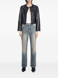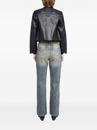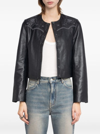embroidered-details leather jacket