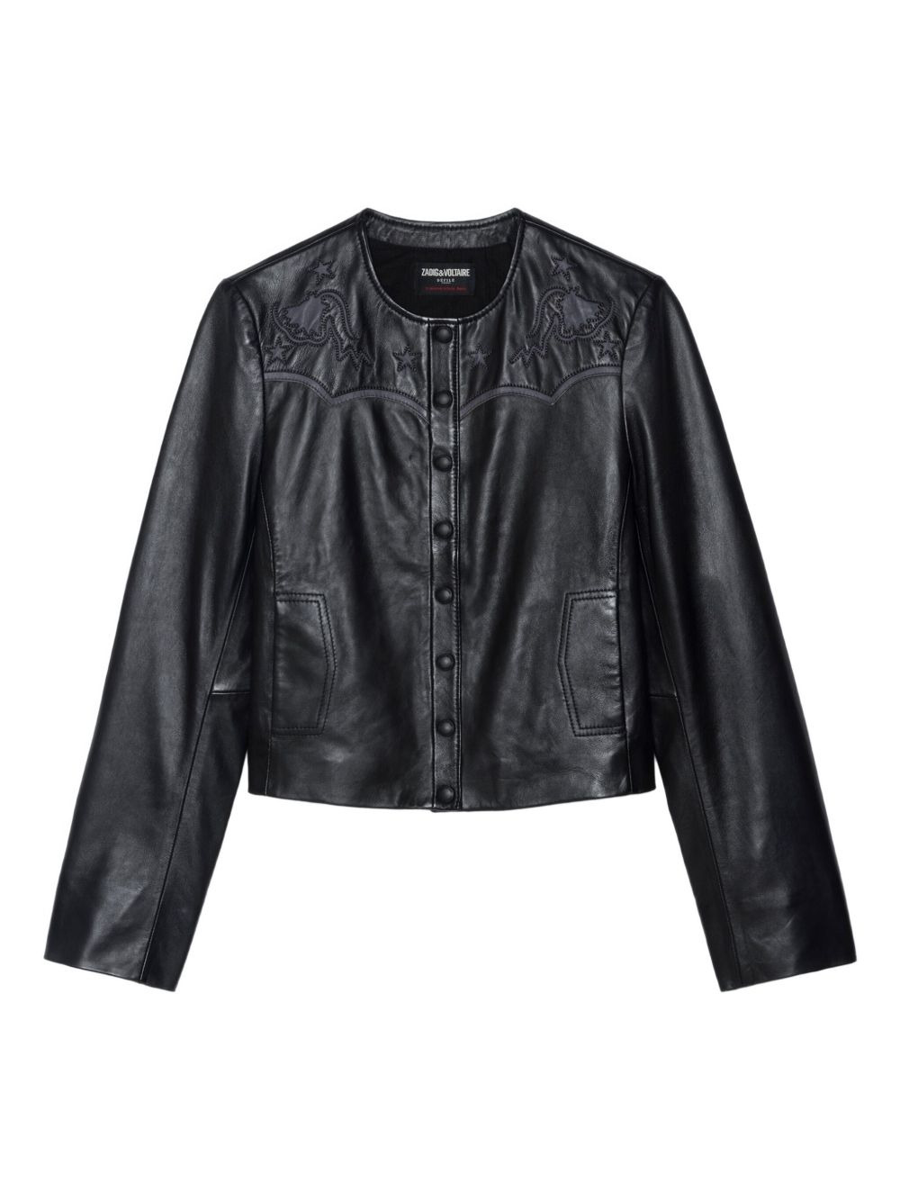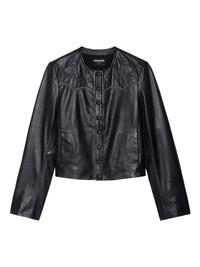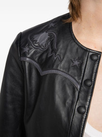 embroidered-details leather jacket Highlights - Black - Embroidered stars - Embroidered yoke - Button-front fastening - Long sleeves Imported Composition Lamb Skin 100% Washing instructions Read Manufacturer Guidelines