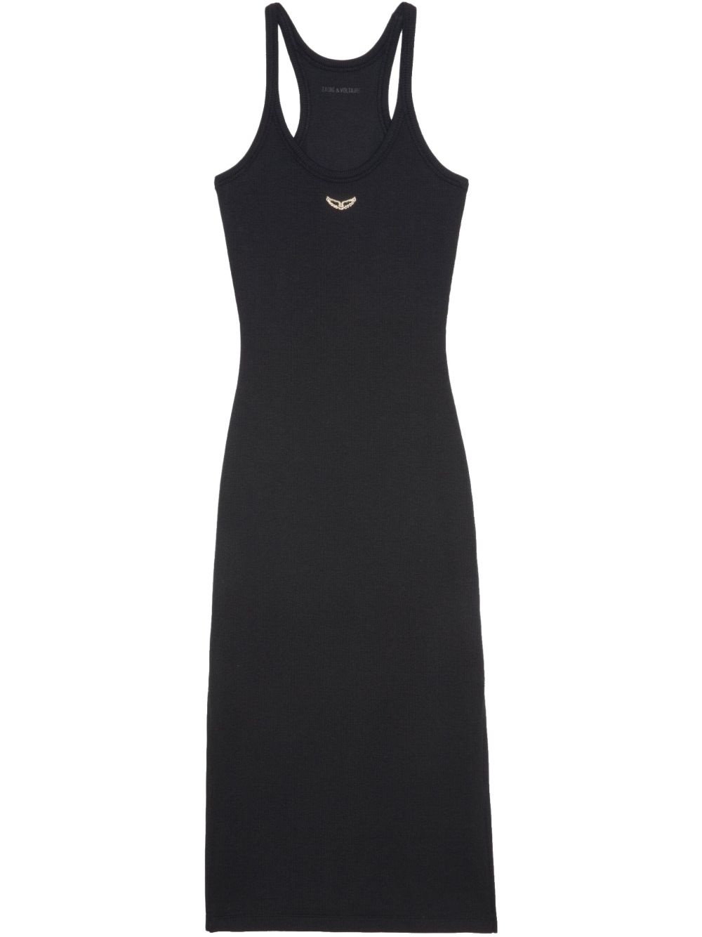 fine-ribbed midi dress Highlights - Black - Short side slits - Scoop neck - Sleeveless - Gold-tone logo plaque Imported Composition Organic Cotton 95%, Elastane 5% Washing instructions Machine Wash