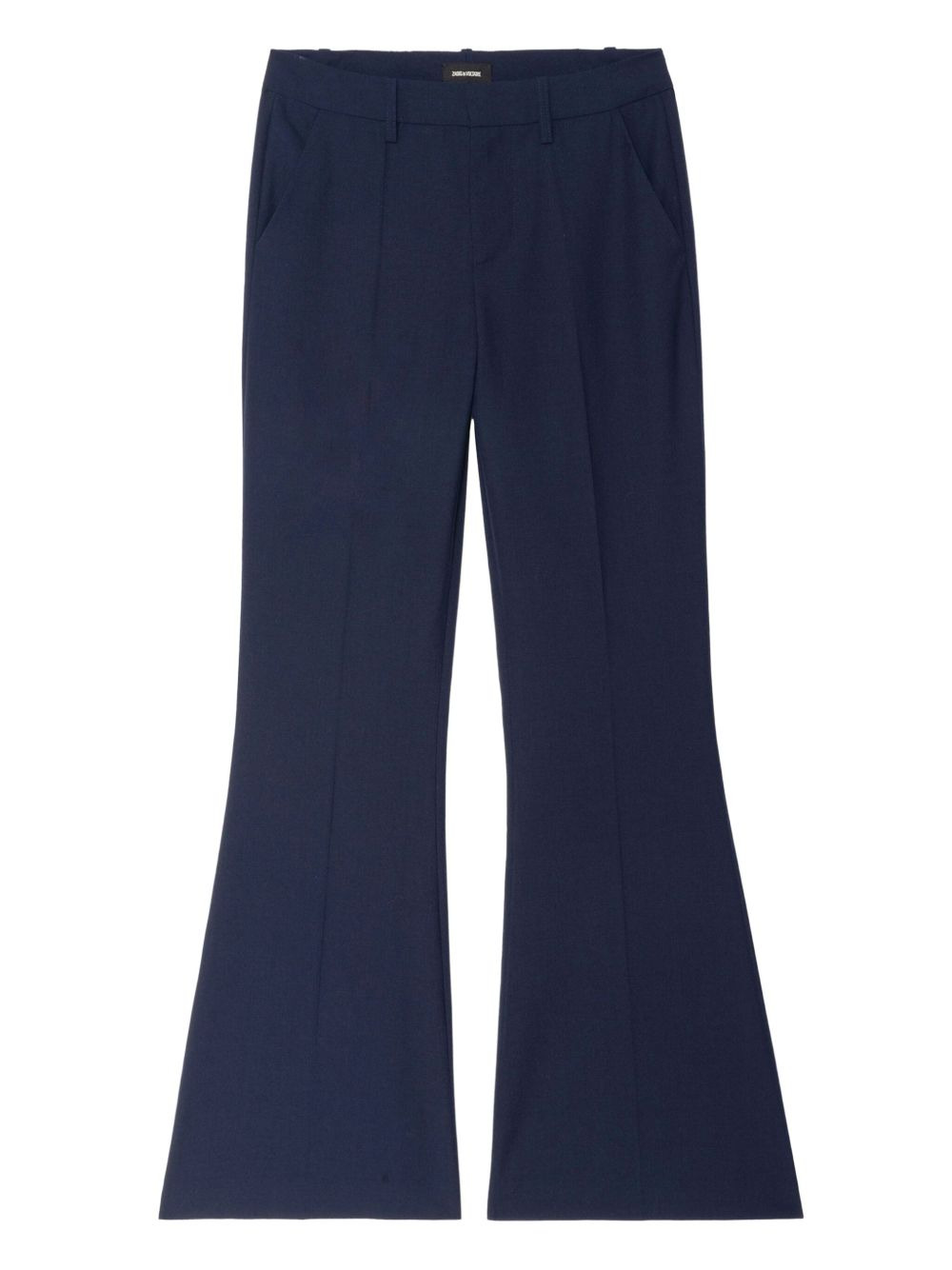 flared trousers Highlights - Navy blue - Flared design - Welt pockets - Front concealed fastening Imported Composition Recycled Polyester 55%, Wool 45% Washing instructions Hand Wash