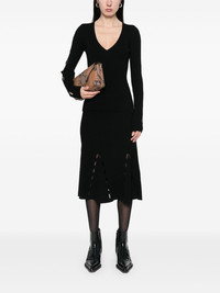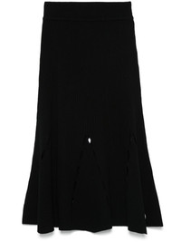 Ginza skirt Highlights - Black - Ribbed waistband - Cut-out detailing - Godet design Imported Composition Merino 90%, Polyester 10% SIZE & FIT Model measurements Height 5 ft 9 in(1.76 m) Bust/Chest 32.28 in(82 cm) Hips 35.43 in(90 cm) Waist 25.19 in(64 cm) FittingInformation This midi-length skirt is intended to be worn just below the waist The elasticated waist allows for a comfortable fit Made with a midweight knit, this piece offers some stretch