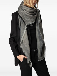 Glenn monogram scarf Highlights - Anthracite grey - Monogram pattern - Frayed edge Made in Italy Composition Modal 53%, Viscose 21%, Acrylic 12%, Acetate 8%, Wool 4%, Metallized Polyester 2% SIZE & FIT Measurement LENGTH 53.14 in(135 cm) WIDTH 53.14 in(135 cm)