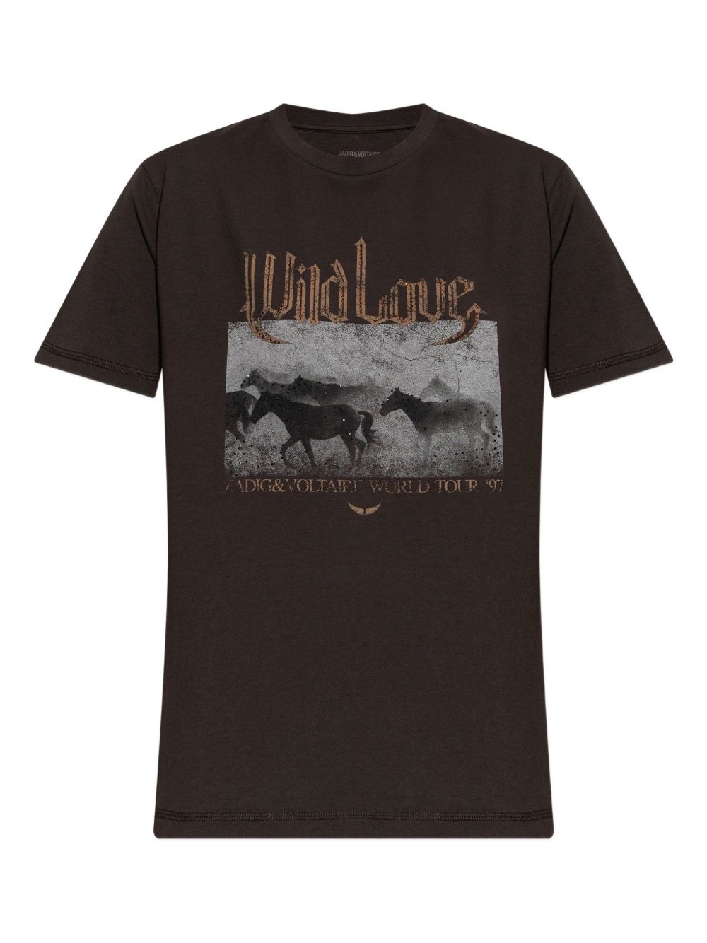 graphic-print T-shirt Highlights - Dark brown - 'wild love' text design - Horse motifs - Short sleeves - Crew neck Imported Composition Cotton 100%