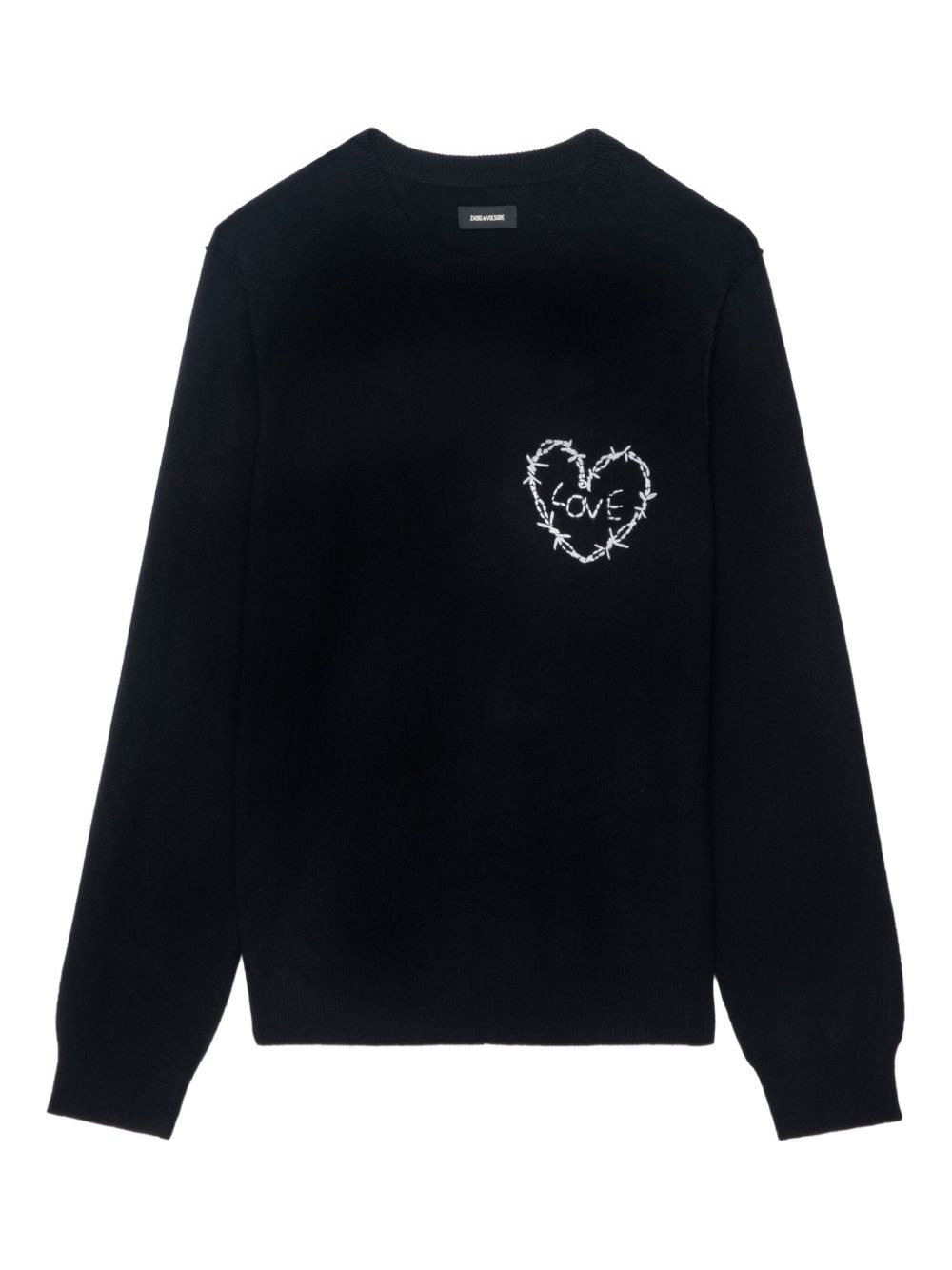 heart-embroidery wool sweater Highlights - Black - Wool-cashmere - Crew neck - Long sleeves - Barbed wire heart embroidery Imported Composition Wool 90%, Cashmere 10% Washing instructions Specialist Cleaning