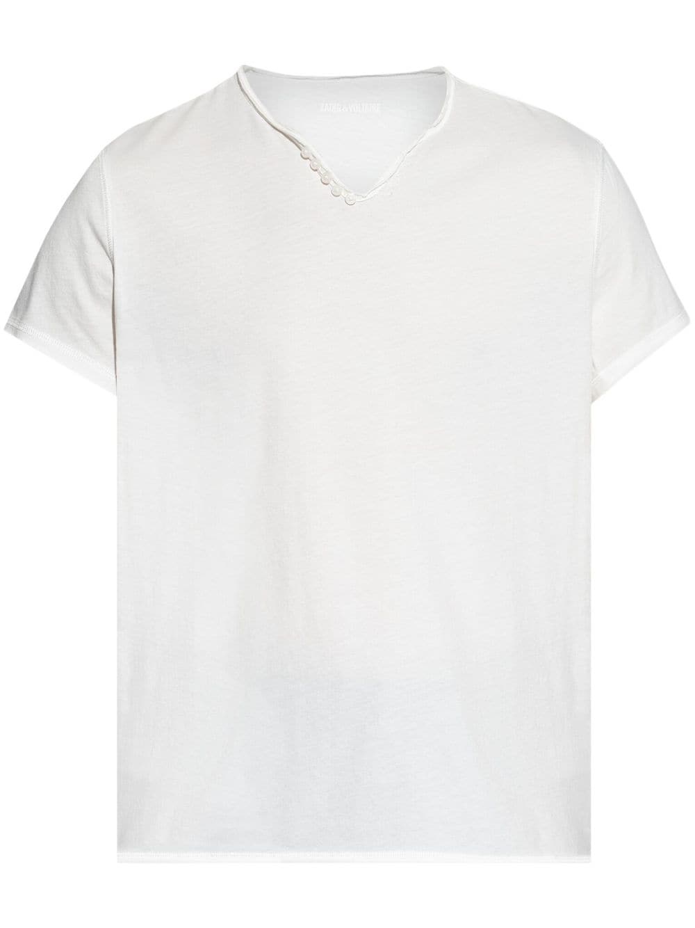 Henley-neck cotton T-shirt Highlights - White - Organic cotton - Lightweight jersey - Henley neck - Short sleeves - Straight hem Imported Composition Cotton 100% SIZE & FIT FittingInformation Designed for a relaxed fit, this piece allows for comfort and movement when worn Made from a lightweight non-stretch fabric, this piece offers minimal elasticity when worn This piece fits true to size – take your usual size