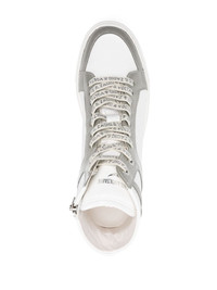 High Flash Infinity leather sneakers Highlights - White/silver - Calf leather - Glitter detailing - Multi-panel design - Two-tone detail - Lightning bolt patch - Logo-print tongue - Logo-print laces - Front touch-strap over lace-up fastening - Short side zip fastening - Mid-top design - Branded insole - Flat rubber sole Imported Composition Leather 100% SIZE & FIT Measurement HEEL 0.98 in(2.5 cm) Sole height 0.78 in(2 cm)