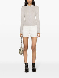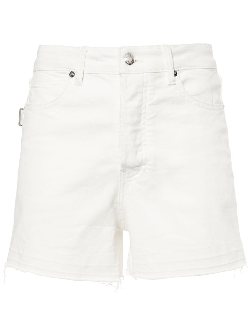 high-rise denim shorts Zadig&Voltaire has invented a mixed silhouette – dynamic and rock combined with urban yet rugged influences. A case in point, these denim shorts are crafted from an organic cotton blend and feature a raw-cut edge. Highlights - White - Stretch organic cotton - Denim - High-waisted - Belt loops - Front button fastening - Classic five pockets - Wide leg - Frayed hem - Above-knee length Imported Composition Organic Cotton 93%, Polyester 5%, Elastane 2% SIZE & FIT Model measurements Height 5 ft 10 in(1.78 m) Bust/Chest 31.49 in(80 cm) Hips 35.03 in(89 cm) Waist 23.62 in(60 cm) FittingInformation Constructed from stretch denim, this piece offers a stretch fit with durability