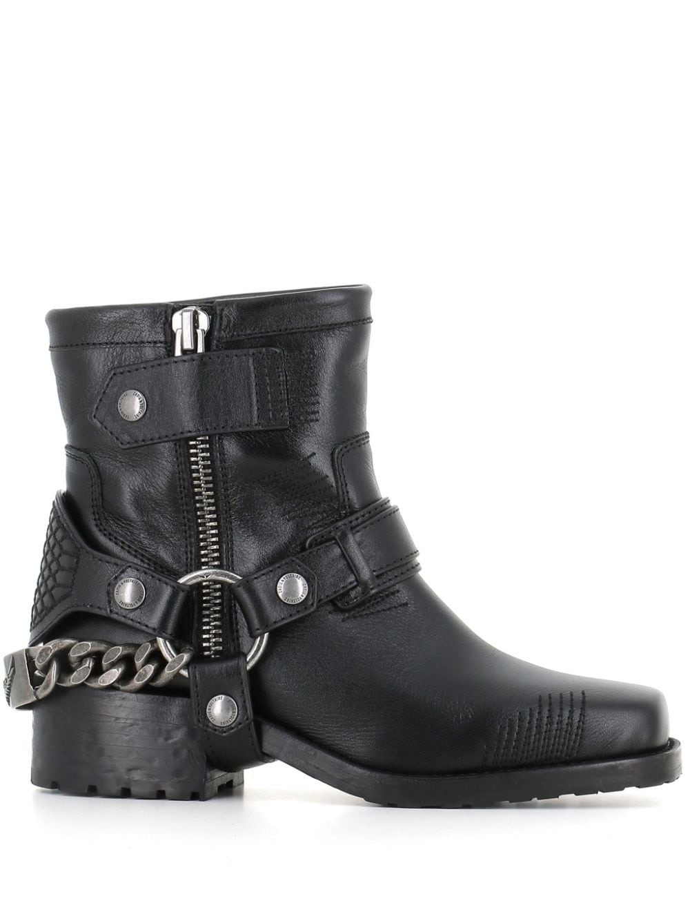 Igata biker boots Highlights - Black - Calf leather - Side zip fastening - Padded ankle - Chain-link detailing - Logo plaque - Decorative stitching - Square toe - Rubber sole Made in France Composition Lining: Calf Leather 100% Sole: Rubber 100% SIZE & FIT Measurement HEEL 1.77 in(4.5 cm)