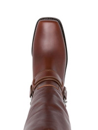 Igata leather boots Zadig&Voltaire's Igata boots are modelled after classic biker styles. They’re crafted from brown leather to a square-toe silhouette and emboldened with straps, rings and zigzag stitching. A signature wings plaque is suspended along the chain-link strap that wraps around the low stacked heel. Highlights - Brown - Calf leather - Grained texture - Panelled design - Logo plaque to the rear - Chain-link detailing - Ring hardware detailing - Strap detailing - Decorative stitching - Square toe - Side zip fastening - Branded leather insole - Low stacked heel - Mid-calf length Imported Composition Lining: Calf Leather 100% Sole: Calf Leather 100% Outer: Calf Leather 100% SIZE & FIT Measurement CIRCUMFERENCE 14.17 in(36 cm) HEEL 1.77 in(4.5 cm) HEIGHT 9.84 in(25 cm)