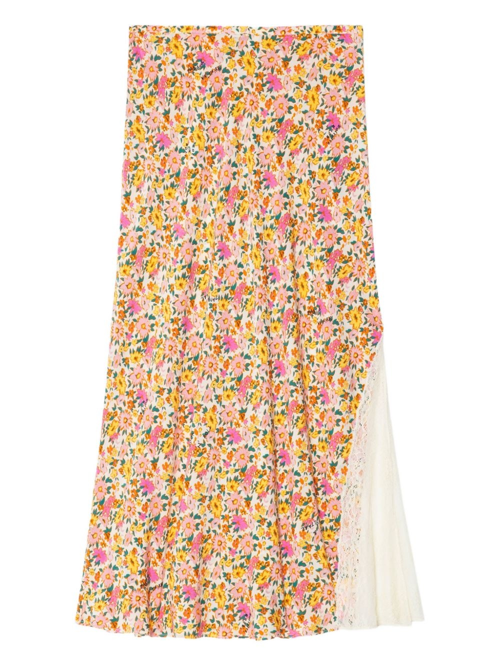 Jayla floral-print midi skirt Highlights - Orange - Floral print - Lace trim detailing Imported Composition Viscose 100%