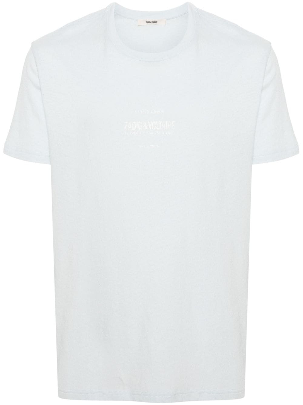 Jetty cotton-blend T-shirt Highlights - Light blue - Cotton-linen blend - Lightweight jersey - Logo print to the front - Crew neck - Short sleeves - Straight hem Imported Composition Cotton 70%, Linen/Flax 30% SIZE & FIT Model measurements Height 6 ft 2 in(1.87 m) Bust/Chest 36.41 in(92.5 cm) Hips 35.43 in(90 cm) Waist 29.52 in(75 cm) FittingInformation Designed for a relaxed fit, this piece allows for comfort and movement when worn Made from a midweight non-stretch fabric, this piece offers minimal elasticity when worn This piece fits true to size – take your usual size Washing instructions Dry Clean Only