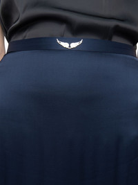 Jimeno satin wings-embellished maxi skirt Highlights - Dark-blue - Satin texture - A-line shape - Concealed zip fastening - Wing emblem at the waist Imported Composition Viscose 100% Washing instructions Read Manufacturer Guidelines