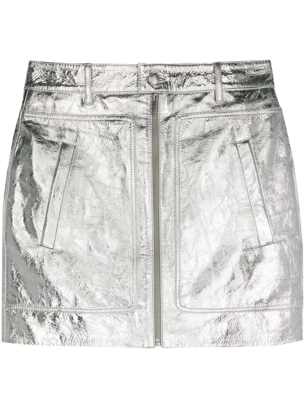 Jinette leather mini skirt Highlights - Silver-tone - Goatskin - Cracked effect - Metallic effect - Logo-engraved buttons - Two front welt pockets - Two rear patch pockets - Belt loops - Front button and zip fastening - Thigh-length - Straight hem - Full lining Imported Composition Lining: Polyester 100% Outer: Goat Skin 100% Washing instructions Specialist Cleaning