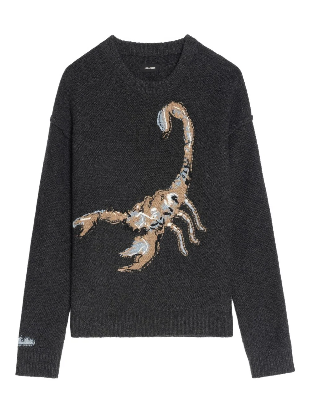 Jordan scorpion-motif sweater Highlights - Grey - Scorpion design - Round neck - Long sleeves - Ribbed hem - Ribbed cuffs Imported Composition Merino 100% Washing instructions Hand Wash