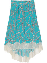 Joslin chain-print silk skirt Highlights - Aqua blue/white - Silk - Satin weave - Lace trim - Chain-link print - Logo print embellishment - Gathered detailing - Slip pockets to the sides - Rear elasticated waistband - Mid-length - High-low hem - Unlined Imported Composition Silk 100%, Polyamide 74%, Elastane 26%