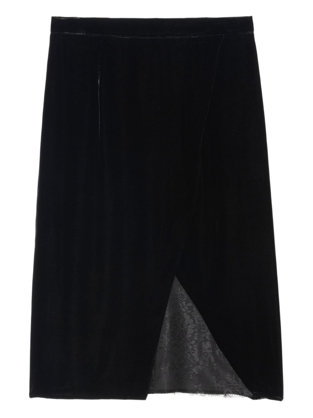 Julen velvet lace skirt Highlights - Black - Velvet texture - Lace trim - Wrap design - Belt - Spaghetti straps Imported Composition Viscose 80%, Silk 20% Washing instructions Hand Wash