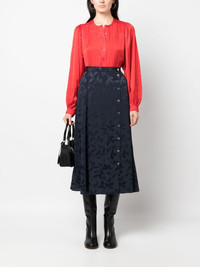 June Jac Ikat silk skirt Highlights - Navy blue - Silk - Patterned jacquard - High-waisted - Off-centre front button fastening - Below-knee length - Straight hem Imported Composition Silk 100% SIZE & FIT Model measurements Height 5 ft 10 in(1.78 m) Bust/Chest 31.49 in(80 cm) Hips 36.22 in(92 cm) Waist 25.59 in(65 cm) Washing instructions Hand Wash