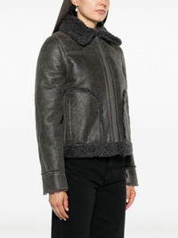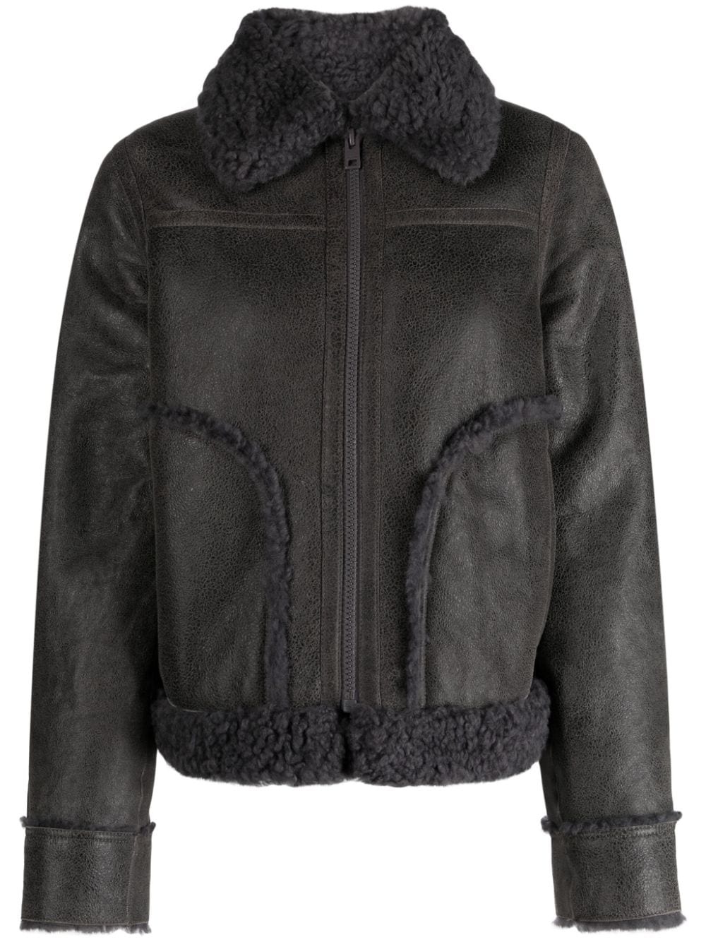Kade shearling-trim leather jacket Highlights - Anthracite grey - Lambskin - Shearling lining - Shearling trim - Shearling collar - Front zip fastening - Long sleeves - Two side slit pockets - Straight hem Imported Composition Sheepskin 100% SIZE & FIT Model measurements Height 5 ft 11 in(1.8 m) Bust/Chest 33.07 in(84 cm) Hips 37.4 in(95 cm) Waist 25.19 in(64 cm) FittingInformation Designed for a boxy fit, intended for a loose fit throughout Firm shearling has a treated construction offering some durability This piece fits true to size – take your usual size Washing instructions Specialist Cleaning