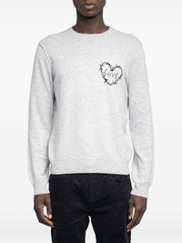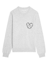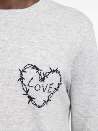 Kennedy heart barbed-wire detail sweater Highlights - Light grey - Crew neck - Long sleeves - Heart motif - Barbed-wire detail - Embroidered lettering Imported Composition RWS Wool 90%, Cashmere 10% Washing instructions Specialist Cleaning