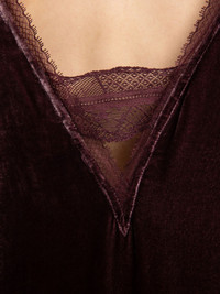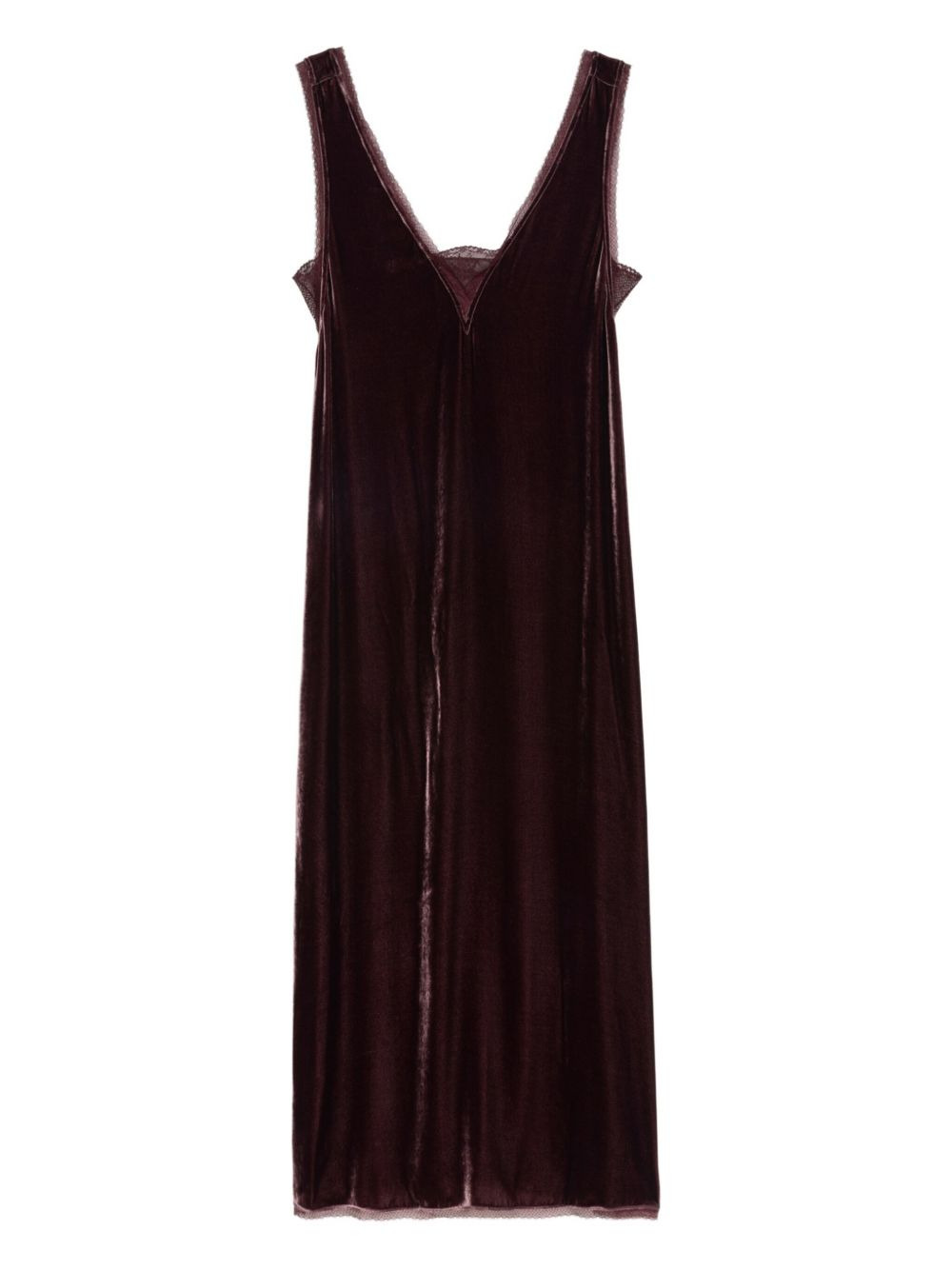 lace-insert midi dress Highlights - Burgundy - Textured panel - V-neck - Lace insert - Sleeveless - Raw-edge hem Imported Composition Velvet 100% Washing instructions Hand Wash