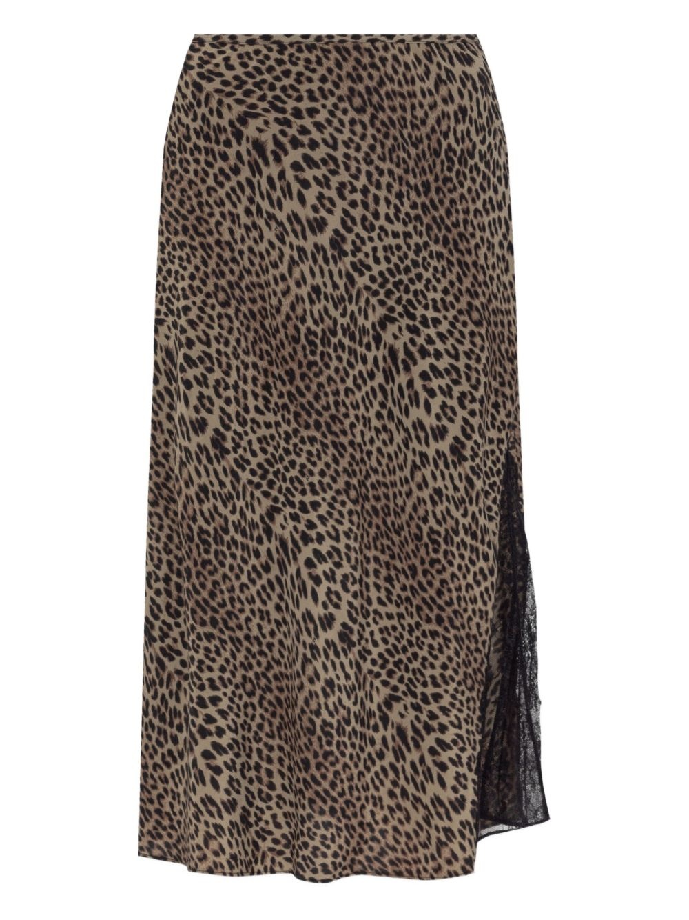 lace-insert skirt Highlights - Brown - Leopard print - Side lace insert - Midi length - Straight hem - A-line shape Imported Composition Viscose 100% Washing instructions Read Manufacturer Guidelines