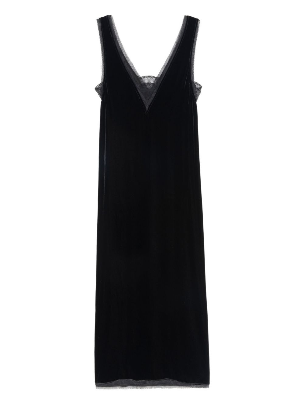 lace-trimmed slip midi dress Highlights - Black - Textured panel - Sleeveless - V-neck - Lace trim - Side splits Imported Composition Velvet 100% Washing instructions Hand Wash