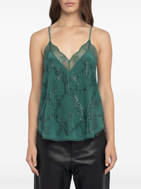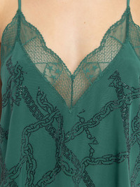 lace-trimmed top Highlights - Green - Lace trim detailing - Spaghetti straps - Delicate chain design - Flowing silhouette Imported Composition Silk 100%