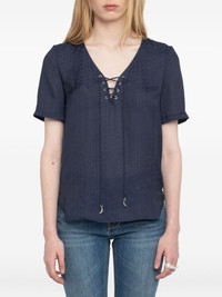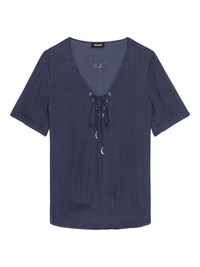 lace-up v-neck t-shirt Highlights - Navy blue - Lace-up detailing - Short sleeves - Textured finish - Eyelet accents Imported Composition Polyester 35%