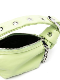 Le Cecilia leather mini bag Highlights - Light green - Calf leather - Embossed logo to the front - Eyelet detailing - Knot detailing - Chain-link detailing - Gunmetal-tone buckle detail - Gunmetal-tone hardware - Top zip fastening - Single flat top handle - Internal card slots Made in Italy Composition Lining: Polyester 100% Outer: Calf Leather 100%, Lamb Skin 100% SIZE & FIT Model measurements Height 5 ft 9 in(1.76 m) Bust/Chest 31.88 in(81 cm) Hips 35.43 in(90 cm) Waist 24.8 in(63 cm) Measurement DEPTH 3.54 in(9 cm) HANDLE 5.9 in(15 cm) HEIGHT 3.93 in(10 cm) WIDTH 7.87 in(20 cm)