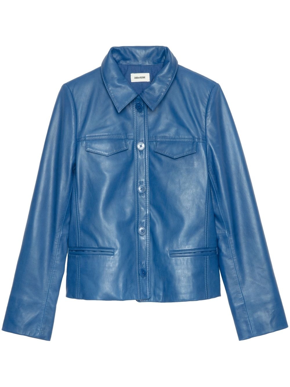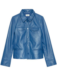 leather jacket Highlights - Blue - Front button fastening - Classic collar - Long sleeves - Buttoned cuffs Imported Composition Lambskin 100%