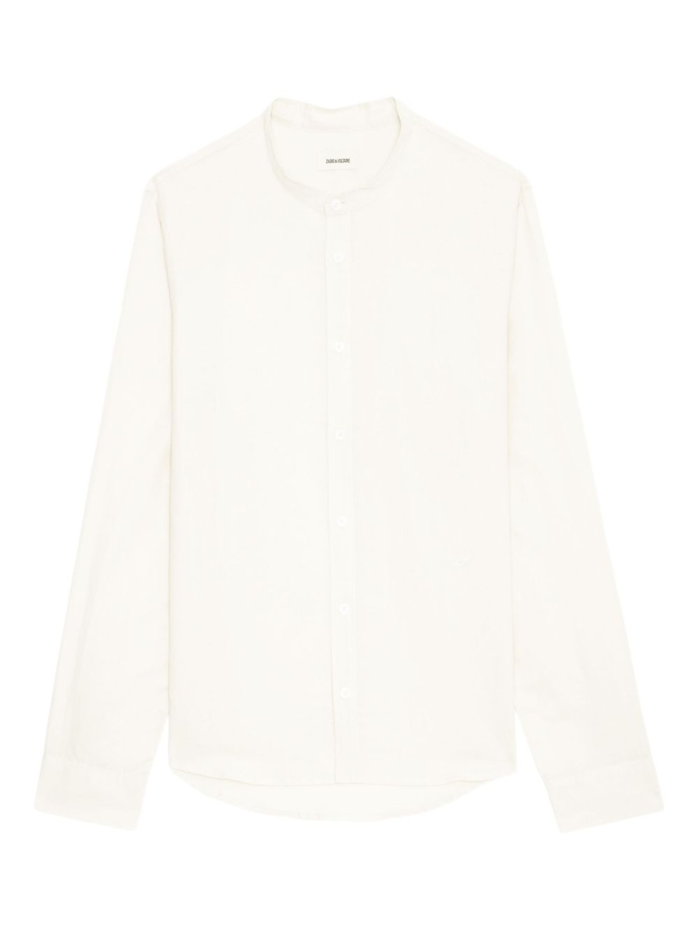linen-organic cotton shirt Highlights - White - Front button fastening - Band collar - Long sleeves - Buttoned cuffs Imported Composition Linen/Flax 60%, Organic Cotton 40%